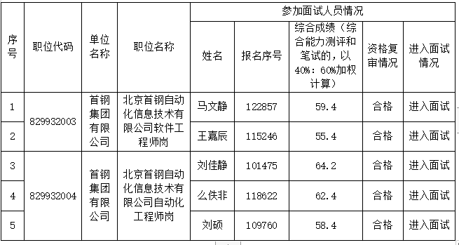 按照北京市2026年度“优培计划”招聘应届优秀大学毕业生工作总体部署要求和首钢集团的整体安排,北京首钢自动化信息技术有限公司已组织完成了综合能力测评、笔试和资格复审工作,初步确定了进入面试人选,现将有关情况公布如下: