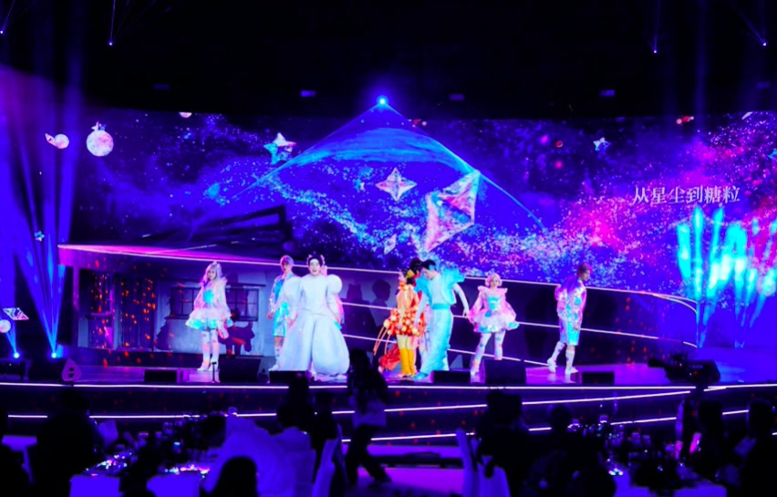 盛典一大亮点是首创的沉浸式舞台剧《甜梦星云夜》。《甜梦星云夜》作为“大戏看北京”系列精品剧目之一,以“糖为勇气之源”为核心理念,通过四位糖果精灵在人类梦境中的奇幻旅程,传递温暖与成长的主题。在剧本创作中,该舞台剧不仅通过抗战故事还原北平时期的城市记忆,又通过工业故事展现首钢园作为“北京工业地标”的时代价值。