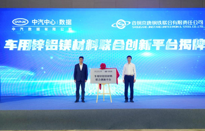 活动现场,中汽数据与首钢京唐钢铁联合有限责任公司共同举行了“车用锌铝镁材料联合创新平台”揭牌仪式,旨在通过该平台汇聚行业优势资源,围绕车用锌铝镁材料应用研究、性能验证与标准制定等,推进汽车用新材料在耐蚀防护和绿色制造领域的协同创新,助力汽车产业高质量发展。