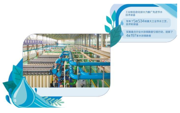 在工业节水政策体系方面,《工业水效提升行动计划》《工业废水循环利用实施方案》等文件构建起工业节水政策体系的“四梁八柱”。工信部大力推广先进节水技术装备,发布了5批534项重大工业节水工艺、技术和装备;实施重点行业水效领跑者引领行动,培育了4批197家水效领跑者,促进企业水效对标提效;加强工业废水循环利用,围绕用水过程循环、区域产城融合等典型模式,遴选了32家试点企业园区、58个典型案例,推动企业内部废水梯级利用、循环利用。
