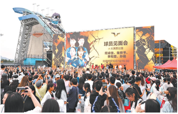 十一假期,WTT中国大满贯赛事激战正酣,大满贯公园同步化身乒乓欢乐海洋,人流涌动。本报记者 刘平摄