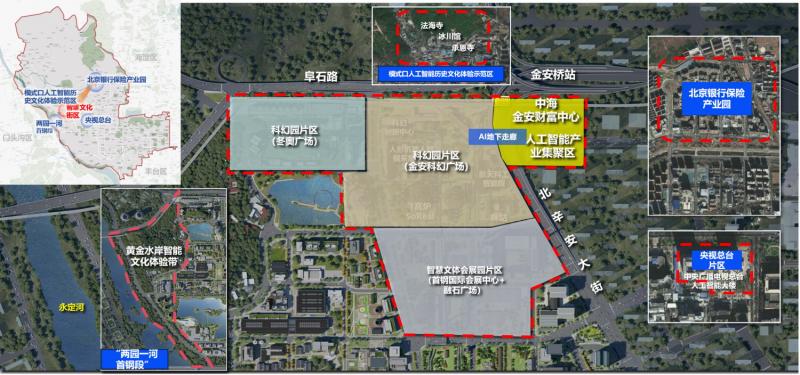 石景山区建设“文化智境”。特色定位为“文智共生、焕新蝶变”,聚焦八大文化融合创新方向,构建先行先试“超级场景”试验场,培育“AI+文化”特色创新集群,建设人工智能+文化融合创新加速器、人工智能+文化全景试验场、人工智能产业集聚网络核心节点,未来城市智慧生活样板示范区。这一创新街区位于首钢园北区和金安桥片区,面积约0.4平方公里,联动拓展至模式口历史文化体验示范区、北京银行保险产业园、“两园一河”首钢园片区和“央视总台”片区等相关区域。