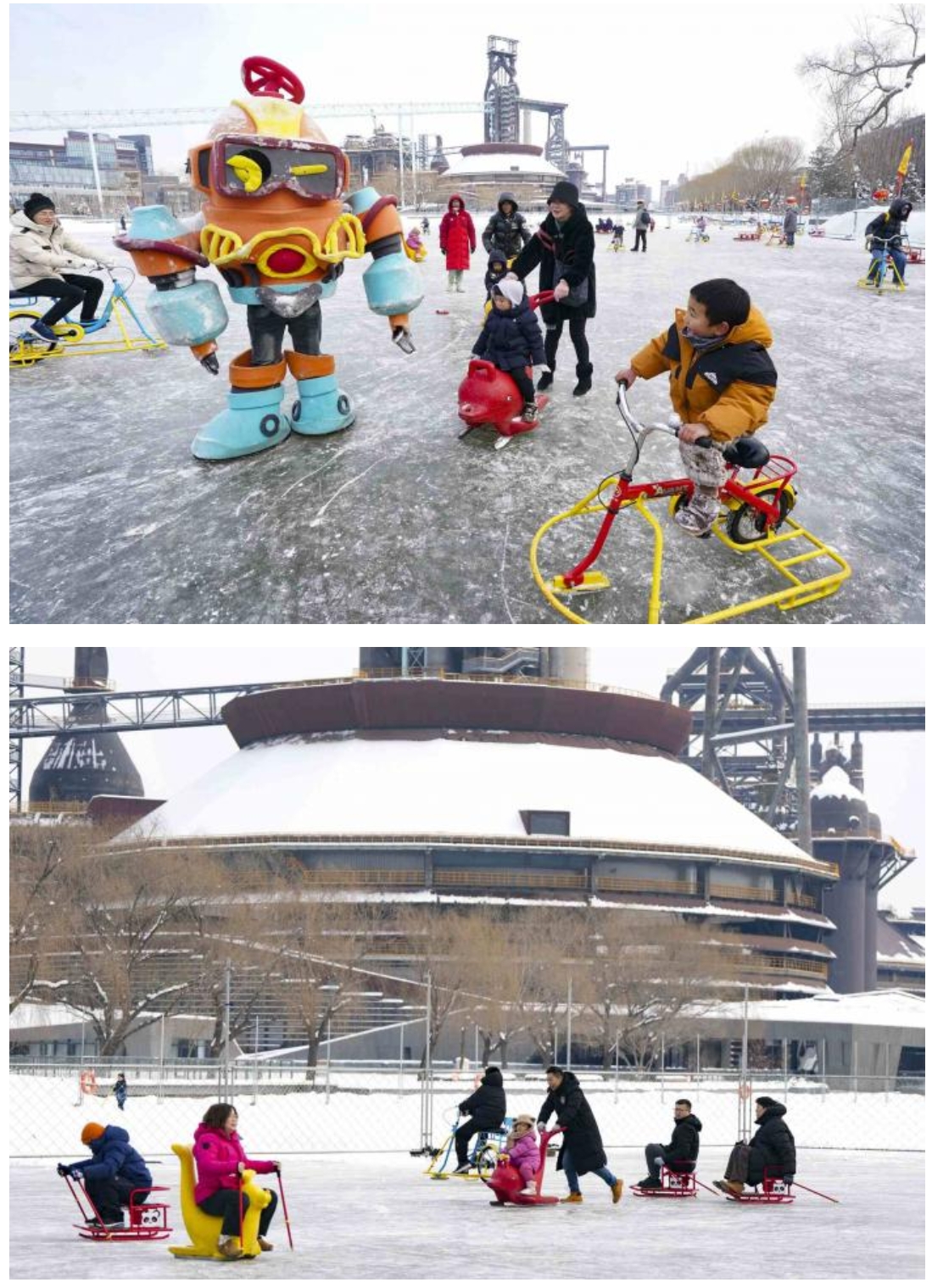 “秀冰场”地处原北京冬奥组委驻地正南,三高炉、石景山东西相伴,地标建筑与自然景观让“秀冰场”成为京西打卡和“冰嬉”的首选之地。